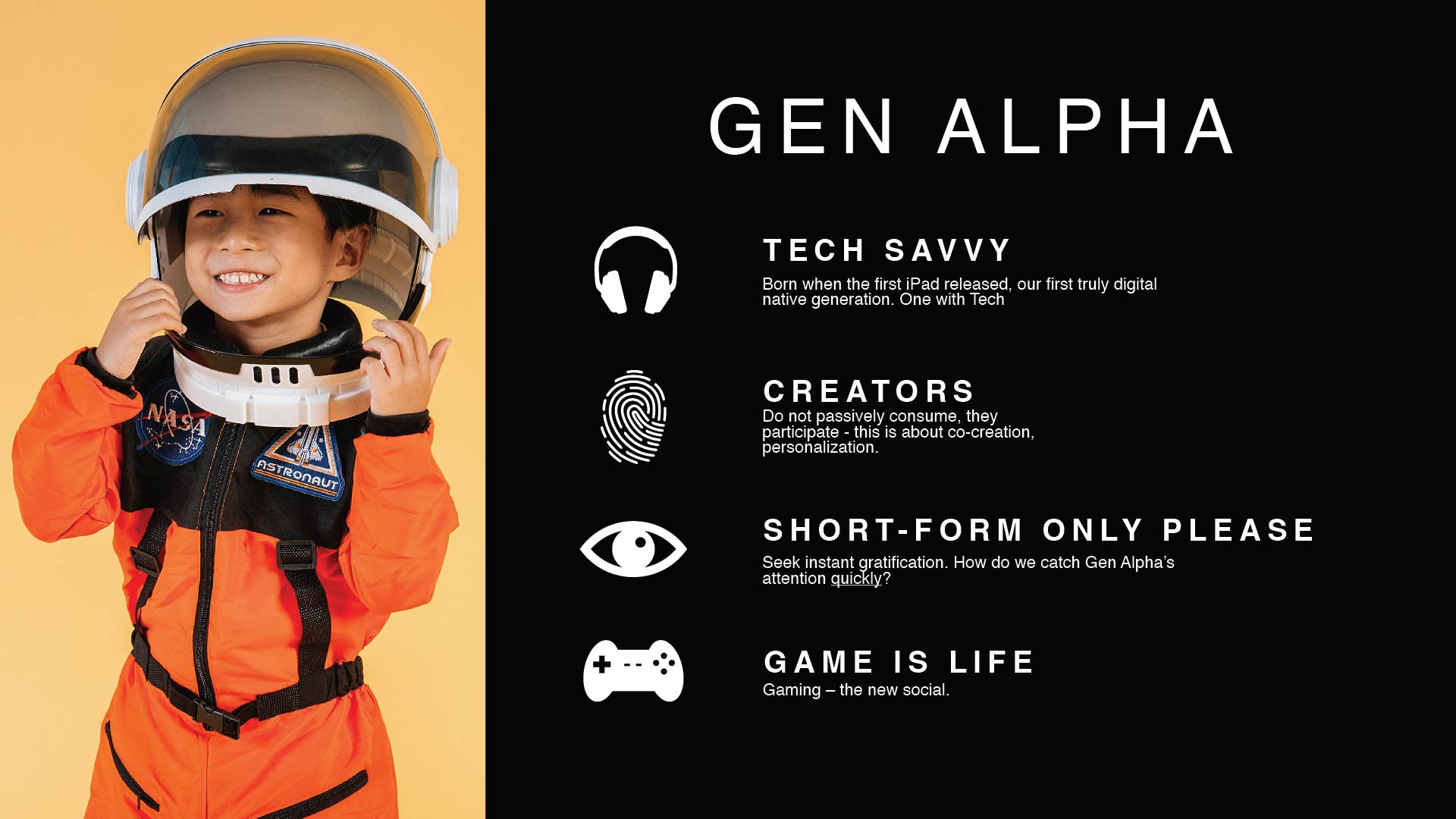 An exploration of Gen Alpha, Gen Z, and the Solo Economy across SEA, India, and MENA, where culture, experience, and technology collide. Grounded in a deep dive into Gen Alpha’s evolving personality, these workshops act as signals for where products, experiences, and brands must go next.